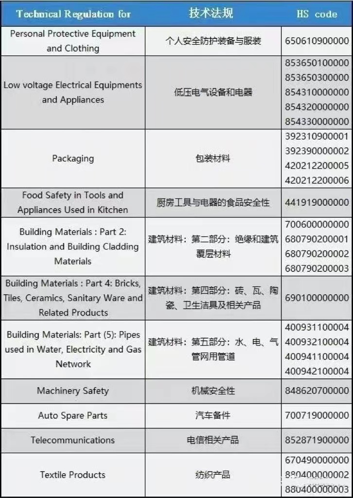 2023年6月,沙特标准、计量和质量组织 (SASO) 发布公告,针对已发布的技术法规,将扩大管制产品的范围,新增产品品类涉及包装、食品接触材料、个人防护设备、纺织品、建筑材料、汽配、机械安全、低电压电气设备和通讯设备等,具体如下: